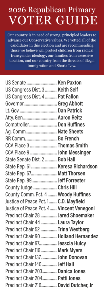 In an era of increasing governmental overreach, the Collin County Conservatives PAC stands as a resolute defender of constitutional principles. Your generous contributions enable us to inform like-minded individuals when we endorse principled leaders, and build a stronger conservative movement.